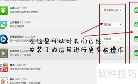 7、 开启自定义管理功能后,可查看已安装的扩展插件并进行相应操作。