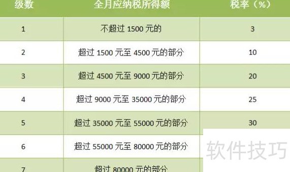 6、 个税起征点为3500元,采用分级累进税率进行计算。