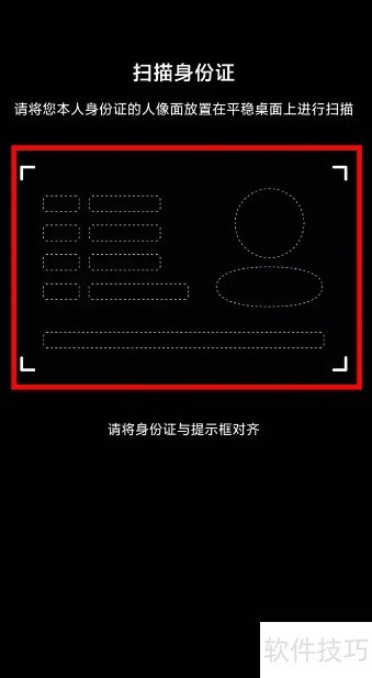 3、 将红色框对准身份证,直接扫描即可完成操作。