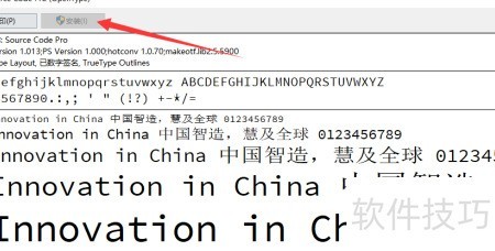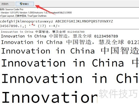 4、 点击图示安装按钮,完成字体安装操作。
