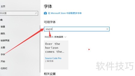 6、 在设置中搜索字体,确认已成功安装并显示效果。