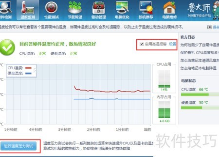 4、 空闲时可进行温压测试,通过模拟高负荷运算,检测电脑散热性能,及时发现潜在的散热问题,确保设备稳定运行。
