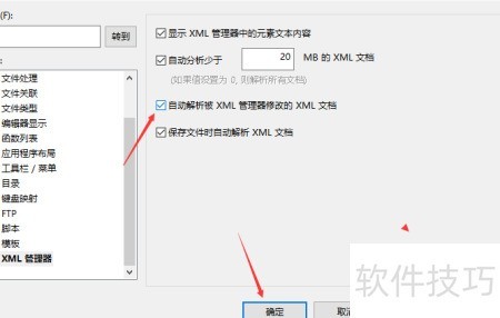 6、 勾选自动解析XML选项后,确认修改并点击确定按钮完成设置。
