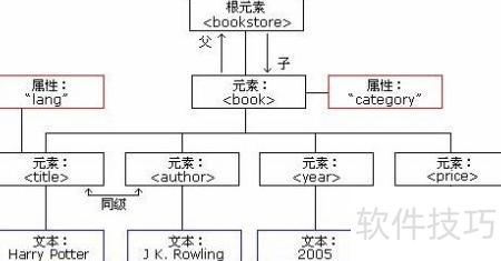 XML文档呈树状结构,从根节点延伸至各个叶节点。