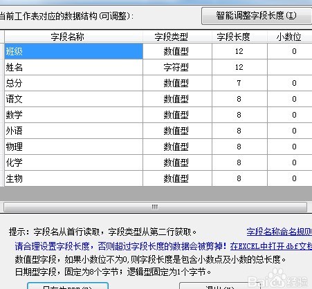 4、 可点击智能调整长度,字段类型支持自定义设置。