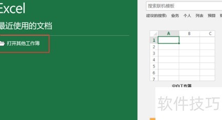 9、 启动Excel程序,点击开始菜单中的Excel,然后选择打开其他工作簿。