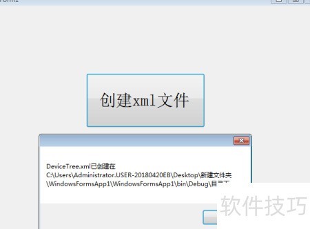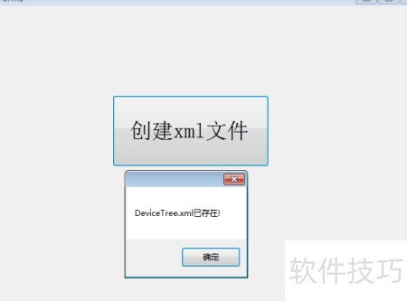 18、 再次点击创建XML文件时,若文件已存在,系统会弹出提示对话框。由于程序中使用了File.Exists方法检测,文件存在时将不再重复创建,具体效果所示。