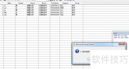 3、 方法二:可通过执行COPY TO test XLS命令实现,也可写作COPY TO test TYPE XL5。若需添加筛选条件,可结合FOR语句使用,例如仅导出性别为女性的数据记录,提升数据提取的精确性与实用性。