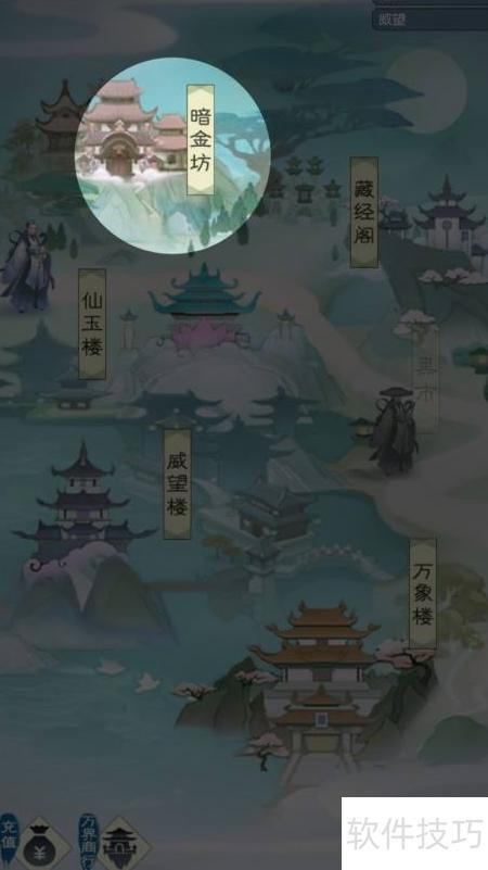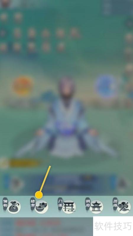 3、 进入坊市界面,点击选择暗金坊建筑即可。