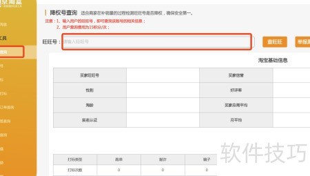 3、 进入旺旺查询导航,输入目标旺旺号后点击搜索即可查询。