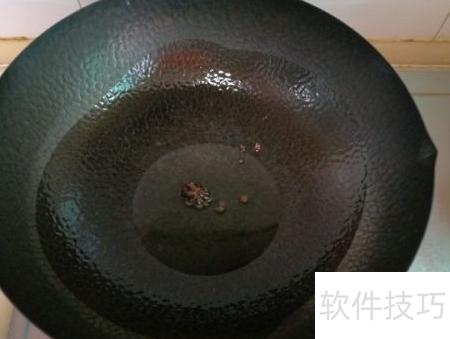 3、 热锅倒油,加入花椒八角煸炒至香气四溢。
