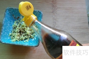 7、 蒸河蟹时备蘸料,姜去皮切碎备用。