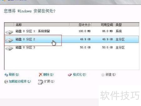 6、 分区完成后,返回上级并选择该分区,6所示。
