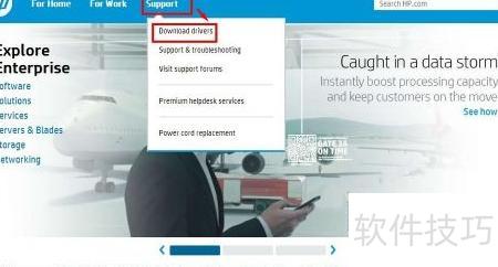 1、 访问惠普英文官网,进入支持页面下载驱动程序。