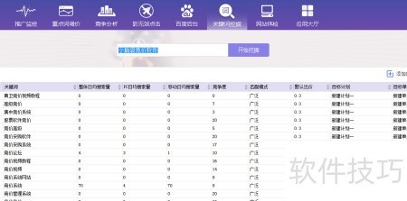 5、 借助关键词调价工具中的挖掘功能,用户可自主查找相关词汇。输入关键词后,系统会显示其搜索量数据。我们只需筛选出搜索量适中、竞争较小的关键词进行优化,从而提升推广效果和排名表现。