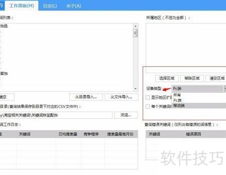 3、 将包含关键词的文本文件导入工具,按需设置地区或端口选项,最后点击启动即可开始运行。