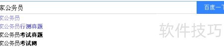 2、 搜索国家公务员时,百度下拉框会自动推荐相关关键词。