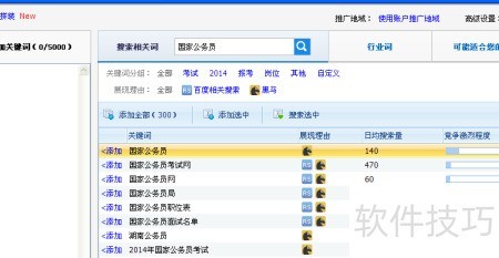1、 在百度搜索国家公务员,页面下方会显示相关搜索词,这些扩展关键词的搜索热度也较高,可供参考和利用。