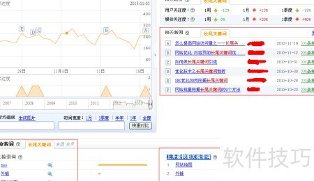 3、 通过百度指数查询长尾关键词的搜索热度,系统将展示该词关联的新闻资讯、相关搜索词及近期热度上升最快的相关词汇。