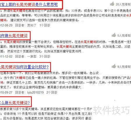 5、 通过百度知道等平台搜索目标关键词,系统会关联显示相关提问,这些用户实际提出的问题即为有价值的长尾关键词,可直接用于内容优化与精准引流。