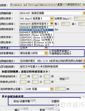 5、 选定格式后即可进入参数配置环节。该软件支持自定义分辨率、比特率和帧率,用户可根据需求自由调节,精准控制输出视频的清晰度与文件体积。同时具备音量增益功能,有效改善原片音量过低或过高的问题,使声音更符合个人听感。此外,还支持加载外部字幕文件和切换音轨,满足多样化播放需求。这些主流实用功能体现了软件的全面性与人性化设计。完成设置后,只需点击开始转换,系统便会高速执行TS格式向MP4的转换任务,过程流畅高效。