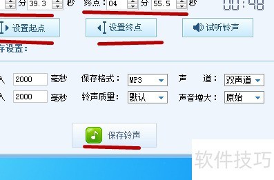 7、 可查看下方精确到分秒的时间点,点击截取后系统将自动保存为铃声。