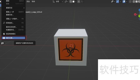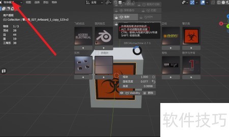 1、 在使用Decal Machine添加并调整贴花时,需借助键触发相关功能。若该按键无效,可能是软件内快捷键出现冲突。此时可前往视图左上角菜单栏,点击按钮进行设置与调整,以解决操作异常问题。