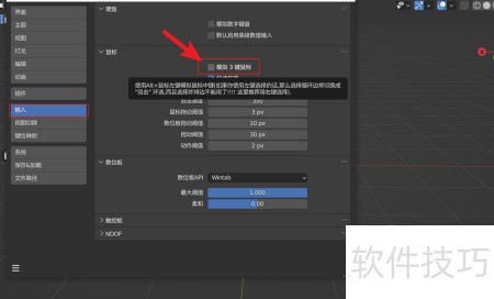 3、 进入,点击选项,右侧窗口中取消勾选,即可在Decal Machine中正常使用键进行操作。