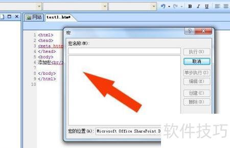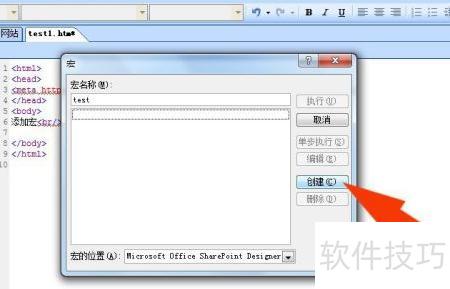 1、 在计算机上启动SharePoint软件,打开已创建的HTML网页,按图示修改网页标题名称。