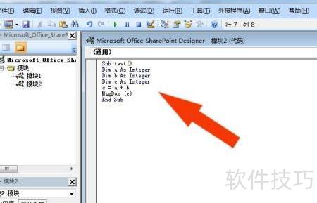 6、 在宏代码中输入加法运算,并设置提示窗口显示结果,具体操作所示。