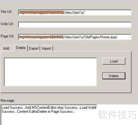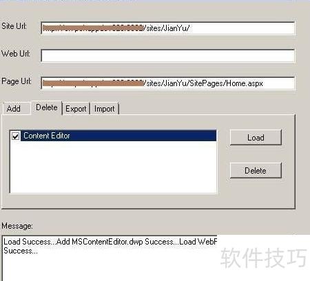 5、 进入Delete选项卡,点击Load按钮,即可加载页面上的WebPart,操作所示。