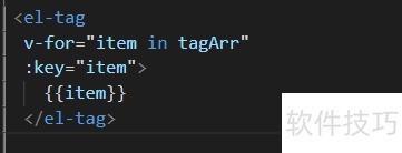 1、 在Vue文件中新增一个标签,将其值设为数组,并对数组中的标签进行遍历处理。