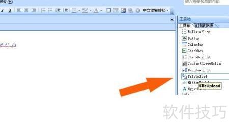 2、 在网页右侧工具栏中选择文件浏览控件,所示。
