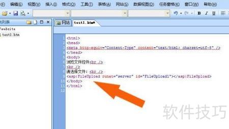 5、 在网页代码中添加浏览文件控件的描述信息,具体所示。