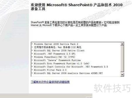 4、 还需安装操作系统及SQL对应补丁。建议使用SharePoint 2010安装程序自带的必备组件准备工具,自动下载并安装所需附加组件;仅在无网络连接时,才需手动下载并进行安装。该方式可有效确保环境配置完整且符合要求,提升安装成功率与系统稳定性。