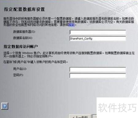 16、 接下来需配置数据库,与2007年相同,请根据实际数据库信息进行设置,完成后点击下一步继续操作。