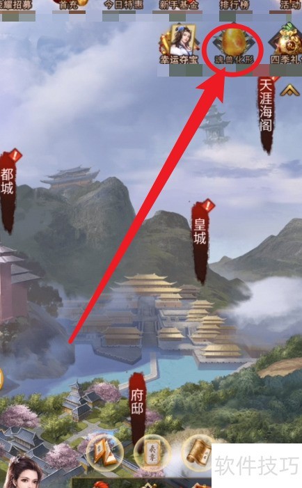 1、 进入龙腾世界后,点击主界面顶部的魂兽化形查看。