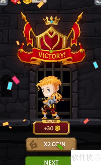 6、 两具骷髅士兵被击败后,屏幕上出现通关提示,顺利通过关卡。