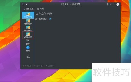 3、 在左侧工作区选中虚拟桌面。