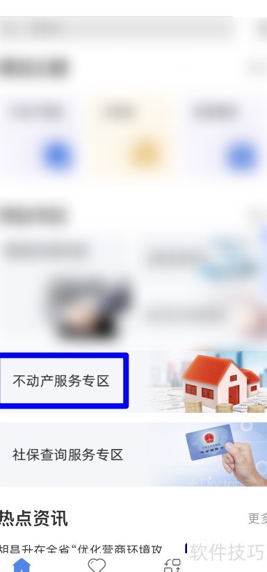 1、 进入首页,点击不动产服务专区