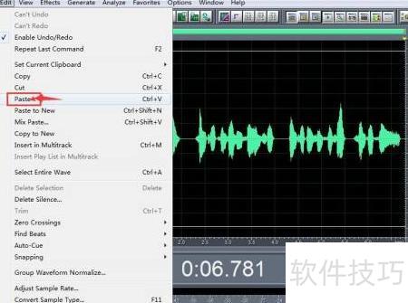 5、 在目标音轨上右键点击,选择粘贴并确认位置。