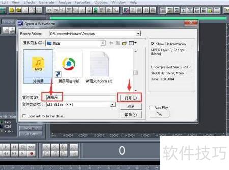 2、 按下Ctrl+O,选中音乐文件后点击打开即可。