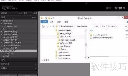 若LR软件缺少Develop Presets文件夹,可手动创建该目录并重启软件即可正常识别预设功能。