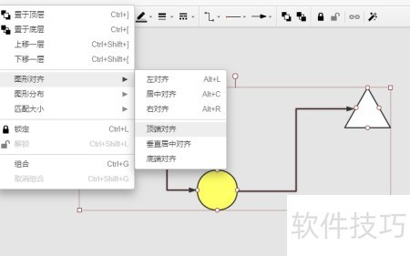 3、 选中所有节点后,通过排列菜单中的图像对齐功能选择顶端对齐,即可实现节点自动顶部对齐。