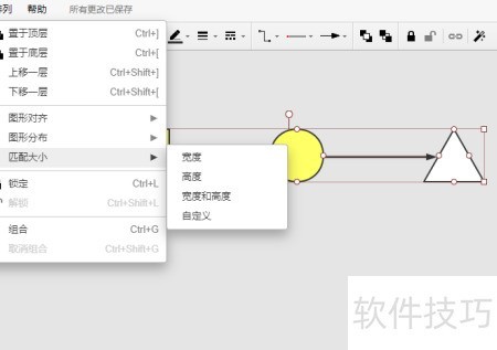 5、 可通过设置实现节点信息的高度与宽度相等,选择排列中的匹配大小,设定统一的高宽值,系统将自动调整节点尺寸保持一致。