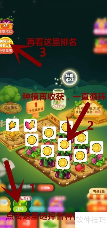 6、 选择播种后,点击已有植物进行种植,反复完成种植与收获的循环流程,最终根据排名,在时间结束时获得相应奖励。