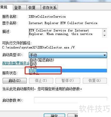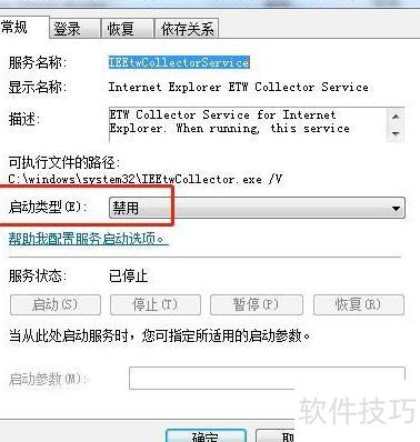 在Win7系统中,可通过运行services.msc找到Internet Explorer ETW Collector Service,右键选择属性,将启动类型设为禁用并停止服务即可。
