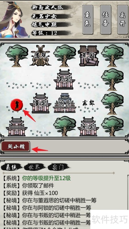 2、 进入聊斋人狐篇,前往西郊找到周小锁并点击。