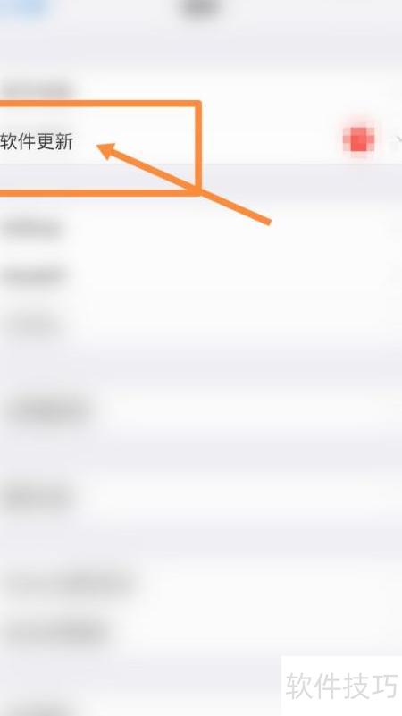 2、 在通用页面中,选择软件更新选项,操作所示。