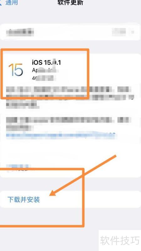 3、 进入软件更新界面,选择下载并安装iOS15.1版本,操作步骤所示。
